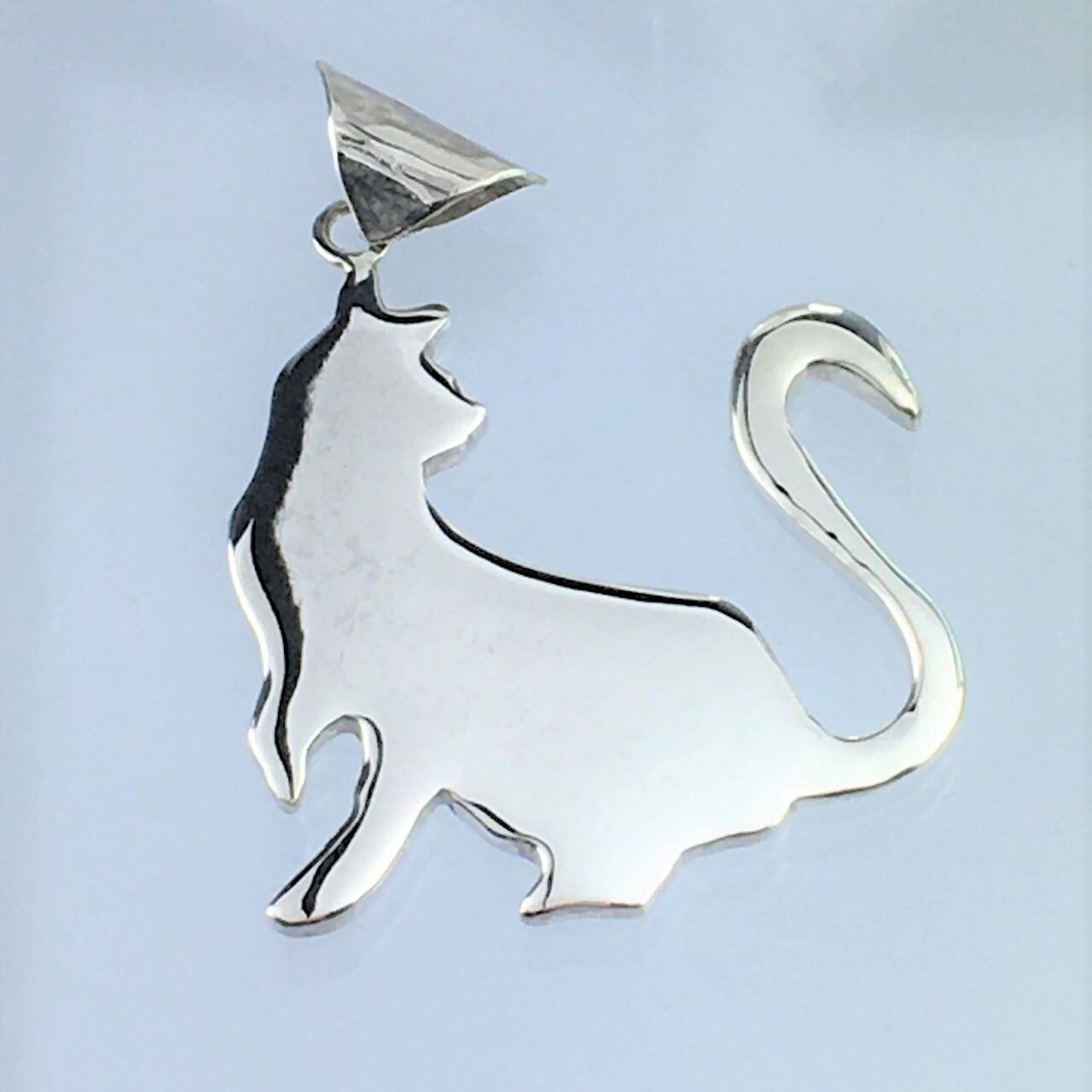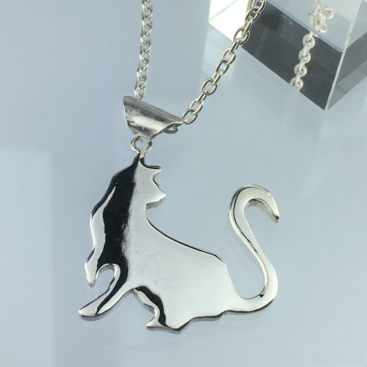 艶消しの銀肌にシッポのみを鏡面に磨き上げました。猫のシルエットを印象付けます。